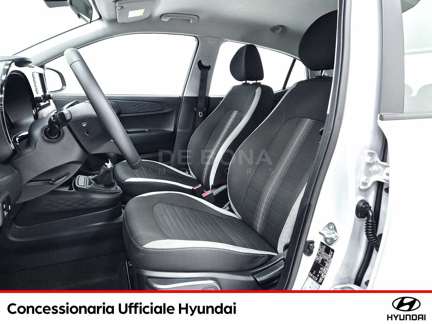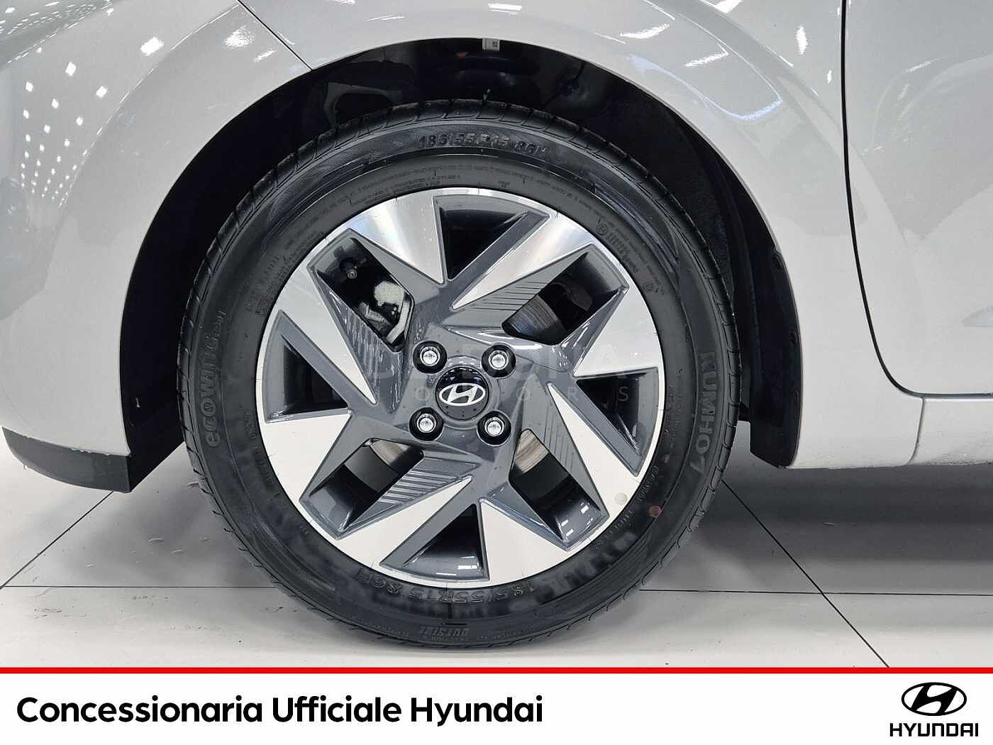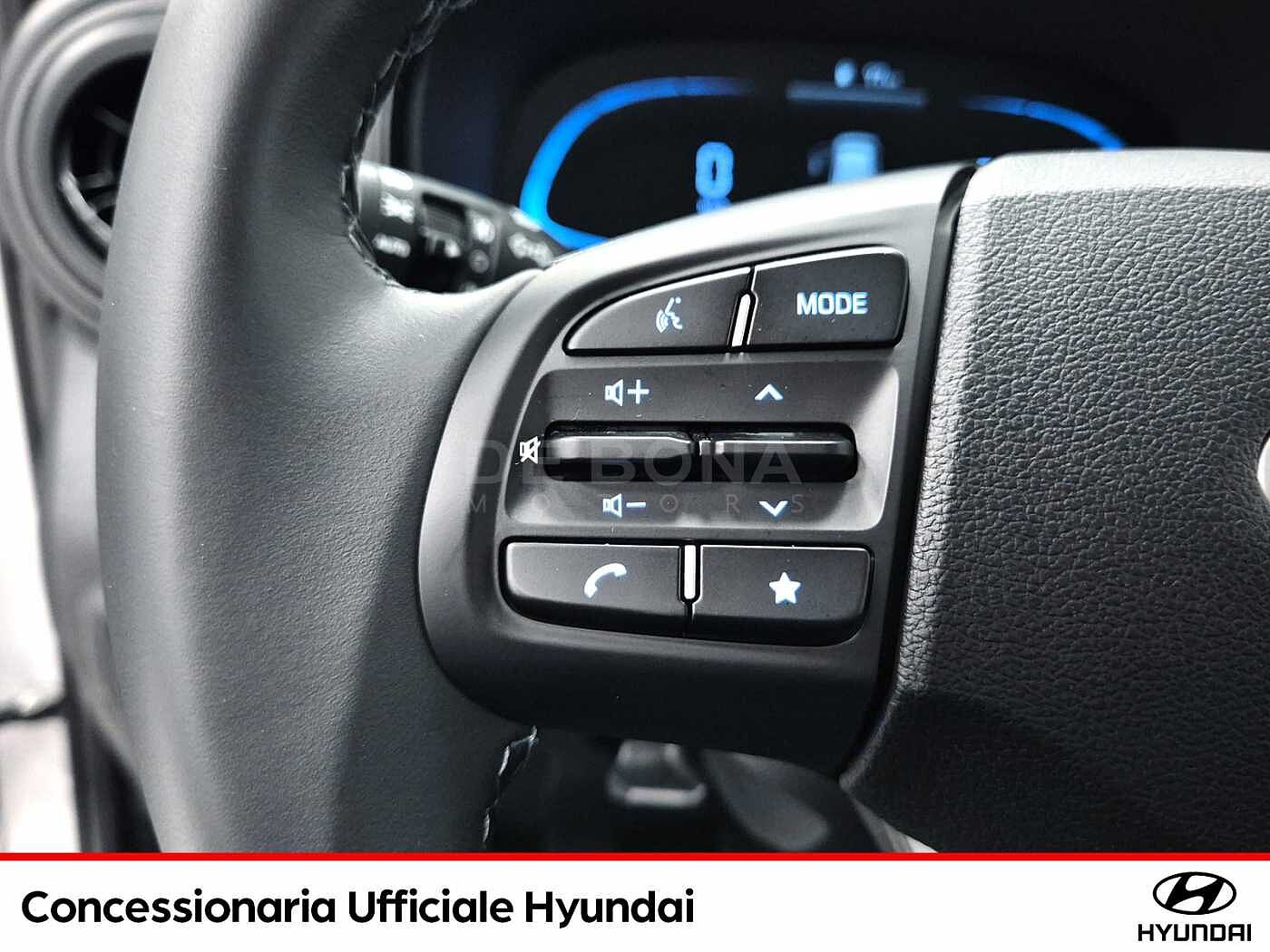 2 Airbag a tendina, 2 Airbag anteriori, 2 Airbag laterali, 5 Anni Di Garanzia / Km Illimitati, Aggiornamenti del sistema multimediale e mappe del navigatore tramite rete wireless (OTA) per 6 mesi, Altoparlanti anteriori e posteriori, Alzacristalli elettrici anteriori con funzione Up amp; Down Safety per guidatore, Alzacristalli Elettrici Posteriori, Antifurto Con Radiocomando A Distanza E Immobilizer, Attacchi ISOFIX, Bluetooth, Cerchi in lega leggera da 15quot; con pneumatici 185/55 R15, Climatizzatore Manuale, Comandi audio al volante, Cruise Control, E-Call, Fendinebbia anteriori, Freni a disco anteriori, Griglia radiatore nero lucido, Hyundai Smart Sense, Kit Gonfiaggio Pneumatici, Luci diurne e di posizione a LED, Maniglie esterne e specchietti retrovisori in tinta con la carrozzeria, Presa Ausiliaria 12V, SAFETY KIT, Sedile guidatore regolabile in altezza, Sedile Posteriore Abbattibile Con Modulo 60:40, Sedili rivestiti in tessuto, Sensore crepuscolare, Sensori di parcheggio posteriori con retrocamera, Servizi telematici bluelink per 10 anni (lite), Sistema di assistenza alla partenza in salita (H.A.C.), Sistema di controllo della stabilità (E.S.C.), Sistema di frenata anti bloccaggio (A.B.S.), Sistema di gestione automatica dei fari abbaglianti (H.B.A.), Sistema di mantenimento attivo della corsia (L.K.A./L.F.A.), Sistema di monitoraggio pressione gomme (T.P.M.S.), Sistema di navigazione con display touchscreen da 8quot; con connettività apple carplay e android auto, Sistema di riconoscimento dei limiti di velocità (I.S.L.A./M.S.L.A.), Sistema di riconoscimento presenza passeggeri posteriori (R.O.A.), Sistema di rilevamento della stanchezza del conducente (D.A.W.), Sistema ISG quot;idle stop amp; go systemquot;, Specchietti retrovisori riscaldabili e regolabili elettricamente, Spoiler posteriore, Strumentazione LCD con Cluster TFT centrale da 4.2quot;, USB per la ricarica, Volante regolabile in altezza, Volante rivestito in pelle