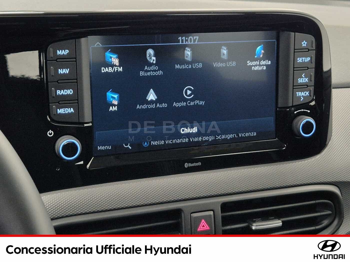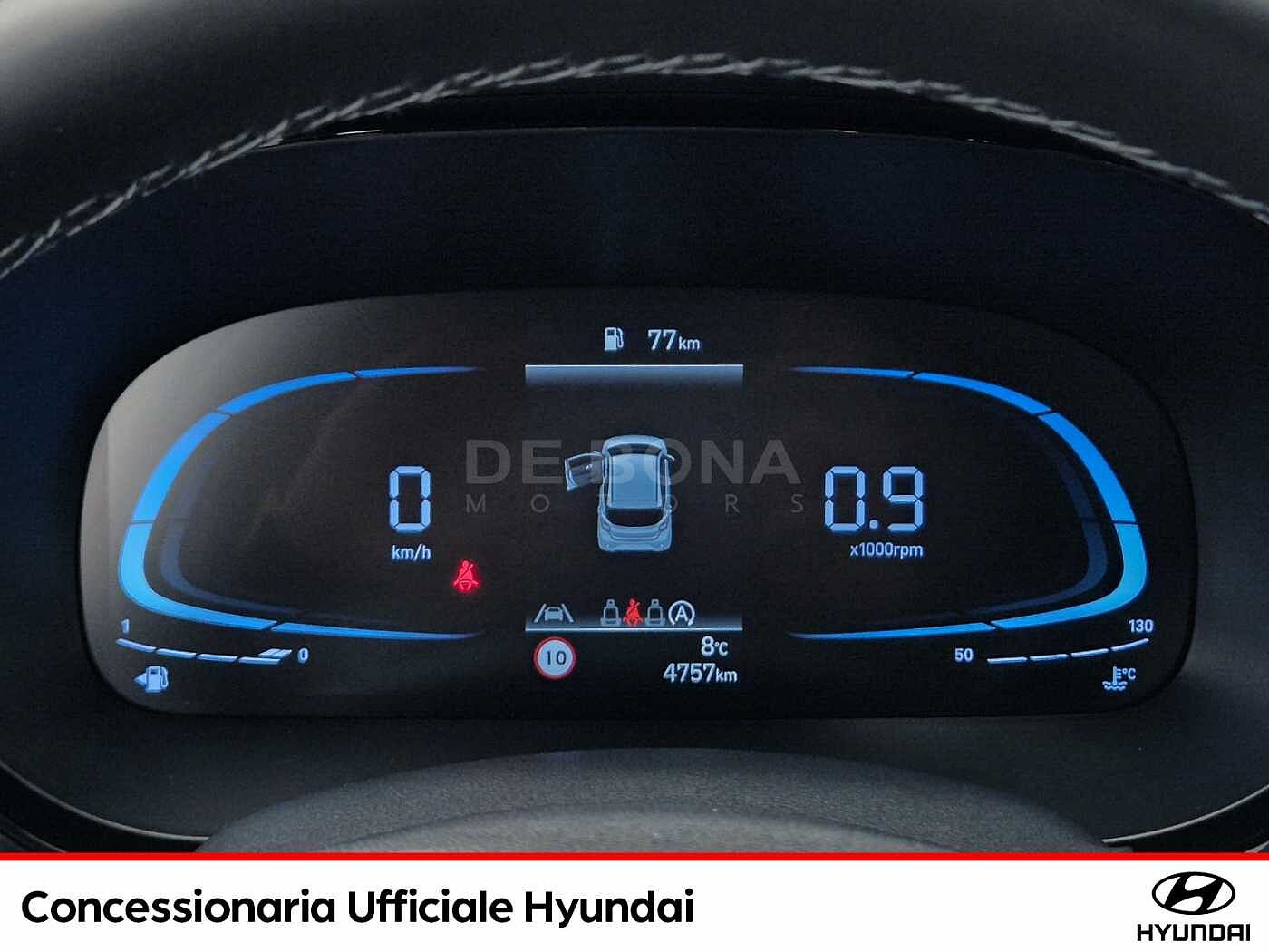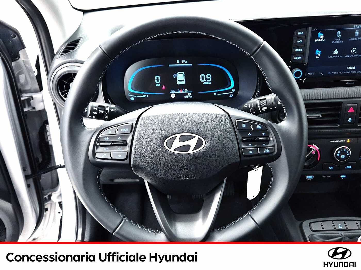2 Airbag a tendina, 2 Airbag anteriori, 2 Airbag laterali, 5 Anni Di Garanzia / Km Illimitati, Aggiornamenti del sistema multimediale e mappe del navigatore tramite rete wireless (OTA) per 6 mesi, Altoparlanti anteriori e posteriori, Alzacristalli elettrici anteriori con funzione Up amp; Down Safety per guidatore, Alzacristalli Elettrici Posteriori, Antifurto Con Radiocomando A Distanza E Immobilizer, Attacchi ISOFIX, Bluetooth, Cerchi in lega leggera da 15quot; con pneumatici 185/55 R15, Climatizzatore Manuale, Comandi audio al volante, Cruise Control, E-Call, Fendinebbia anteriori, Freni a disco anteriori, Griglia radiatore nero lucido, Hyundai Smart Sense, Kit Gonfiaggio Pneumatici, Luci diurne e di posizione a LED, Maniglie esterne e specchietti retrovisori in tinta con la carrozzeria, Presa Ausiliaria 12V, SAFETY KIT, Sedile guidatore regolabile in altezza, Sedile Posteriore Abbattibile Con Modulo 60:40, Sedili rivestiti in tessuto, Sensore crepuscolare, Sensori di parcheggio posteriori con retrocamera, Servizi telematici bluelink per 10 anni (lite), Sistema di assistenza alla partenza in salita (H.A.C.), Sistema di controllo della stabilità (E.S.C.), Sistema di frenata anti bloccaggio (A.B.S.), Sistema di gestione automatica dei fari abbaglianti (H.B.A.), Sistema di mantenimento attivo della corsia (L.K.A./L.F.A.), Sistema di monitoraggio pressione gomme (T.P.M.S.), Sistema di navigazione con display touchscreen da 8quot; con connettività apple carplay e android auto, Sistema di riconoscimento dei limiti di velocità (I.S.L.A./M.S.L.A.), Sistema di riconoscimento presenza passeggeri posteriori (R.O.A.), Sistema di rilevamento della stanchezza del conducente (D.A.W.), Sistema ISG quot;idle stop amp; go systemquot;, Specchietti retrovisori riscaldabili e regolabili elettricamente, Spoiler posteriore, Strumentazione LCD con Cluster TFT centrale da 4.2quot;, USB per la ricarica, Volante regolabile in altezza, Volante rivestito in pelle