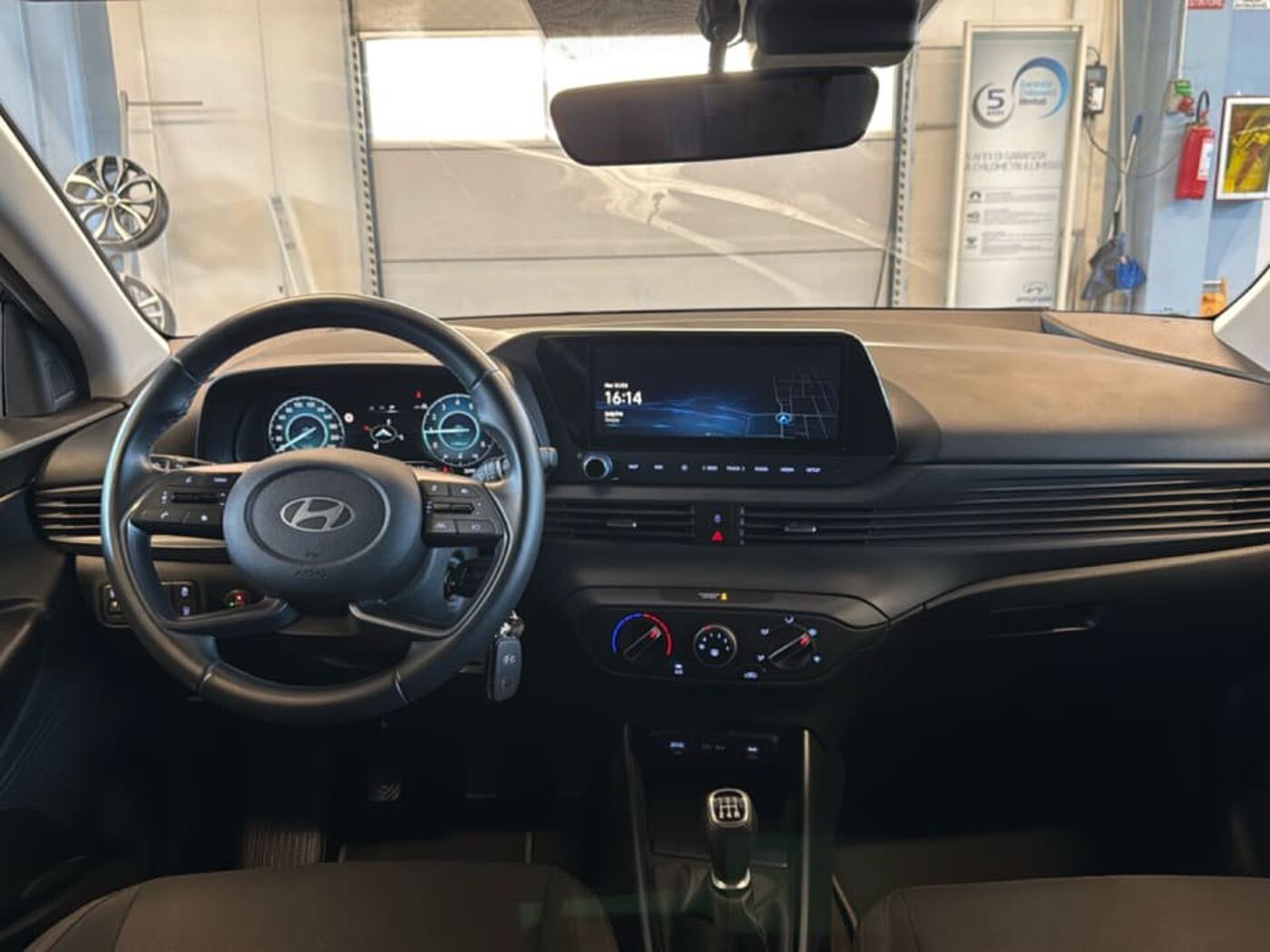 2 Airbag a tendina, 2 Airbag anteriori, 2 Airbag laterali, A.B.S., Aggiornamenti del sistema multimediale e mappe del navigatore tramite rete wireless (OTA) per 6, Altoparlanti anteriori e posteriori, Alzacristalli Elettrici Posteriori, Alzacristalli elettrici anteriori con funzione Up & Down Safety per guidatore, Antifurto Con Radiocomando A Distanza E Immobilizer, Bluetooth con riconoscimento vocale, Cerchi in lega da 16'' con pneumatici 195/55 R16, Climatizzatore Manuale, Cluster supervision da 10.25'' TFT LCD, Comandi audio al volante, Cruise Control, E-Call, E.S.C., Freni a disco anteriori, GARANZIA 5 ANNI / KM ILLIMITATI, Hyundai Smart Sense, Indicatori Di Direzione Integrati Negli Specchietti, Kit Gonfiaggio Pneumatici, Luci diurne e di posizione a LED, Multi Collision Brake (M.C.B.), Rear Occupant Alert (R.O.A.), Sedile Posteriore Abbattibile Con Modulo 60:40, Sedile guidatore regolabile in altezza, Sedili rivestiti in tessuto, Sensore crepuscolare, Sensori di parcheggio posteriori con retrocamera, Servizi telematici bluelink per 10 anni, Sistema ISG idle stop & go system, Sistema di assistenza alla partenza in salita (H.A.C.), Sistema di assistenza anti-collisione frontale con riconoscimento veicoli, pedoni e cicli (F.C., Sistema di gestione automatica dei fari abbaglianti (H.B.A.), Sistema di mantenimento al centro della corsia (L.F.A.), Sistema di navigazione con display touchscreen da 10.25'' con connettività Apple CarPlay e Andro, Sistema di riconoscimento dei limiti di velocità (I.S.L.A.), Sistema di rilevamento della stanchezza del conducente (D.A.W.), Specchietti retrovisori regolabili e riscaldabili elettricamente, T.P.M.S., USB per la ricarica, Volante regolabile in altezza e profondità, Volante rivestito in pelle