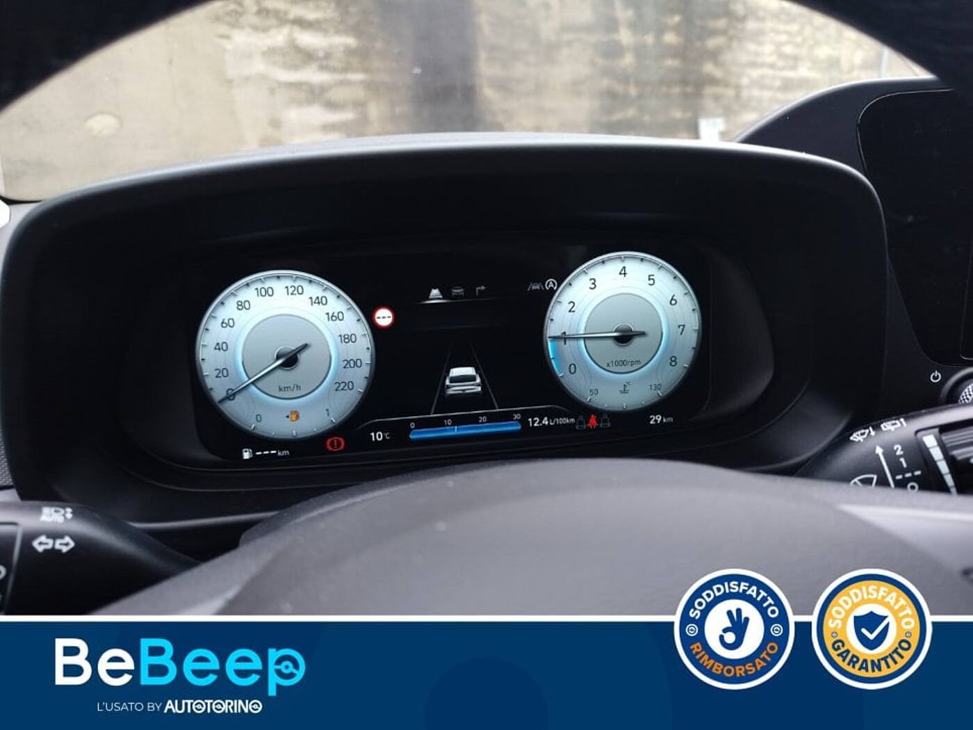 La vettura è completa nella dotazione optional di E.S.C., A.B.S., T.P.M.S., Sistema di assistenza alla partenza in salita (H.A.C.), Multi Collision Brake (M.C.B.), 6 Airbag (anteriori, laterali, a tendina), Antifurto con radiocomando a distanza e Immobilizer, eCall, Freni a disco anteriori, Rear Occupant Alert (R.O.A.), Sistema di gestione automatica dei fari abbaglianti (H.B.A.), Sistema di assistenza anti-collisione frontale con riconoscimento veicoli, pedoni e cicli (F.C.A.), Sistema di avviso di ripartenza (L.V.D.A.), Sistema di mantenimento al centro della corsia (L.F.A.), Sistema di rilevamento della stanchezza del conducente (D.A.W.), Sistema di riconoscimento dei limiti di velocità (I.S.L.A.), Sistema ISG Idle Stop&Go System, Cerchi in acciaio da 15’’ con pneumatici 185/65 R15, Kit gonfiaggio pneumatici, Indicatori di direzione integrati negli specchietti, Luci diurne e di posizione alogene, Specchietti retrovisori regolabili e riscaldabili elettricamente, Barre longitudinali, Alzacristalli elettrici anteriori e posteriori, Climatizzatore manuale, Cruise control, Sedile guidatore regolabile in altezza, Sedile posteriore abbattibile con modulo 60:40, Sedili rivestiti in tessuto, Sensore crepuscolare, Sensori di parcheggio posteriori con retrocamera, Volante regolabile in pelle, Volante regolabile in altezza e profondità, Strumentazione LCD con Cluster TFT centrale da 4.2’’, Altoparlanti anteriori e posteriori, Bluetooth con riconoscimento vocale, Comandi audio al volante, Sistema di navigazione con display touchscreen da 10.25’’ con connettività Apple CarPlay e Android Auto, Servizi telematici Bluelink per 10 anni (Lite), Aggiornamenti del sistema multimediale e mappe del navigatore tramite rete wireless (OTA) per 6 mesi, USB per la ricarica, Cluster Supervision da 10.25’’ TFT LCD
