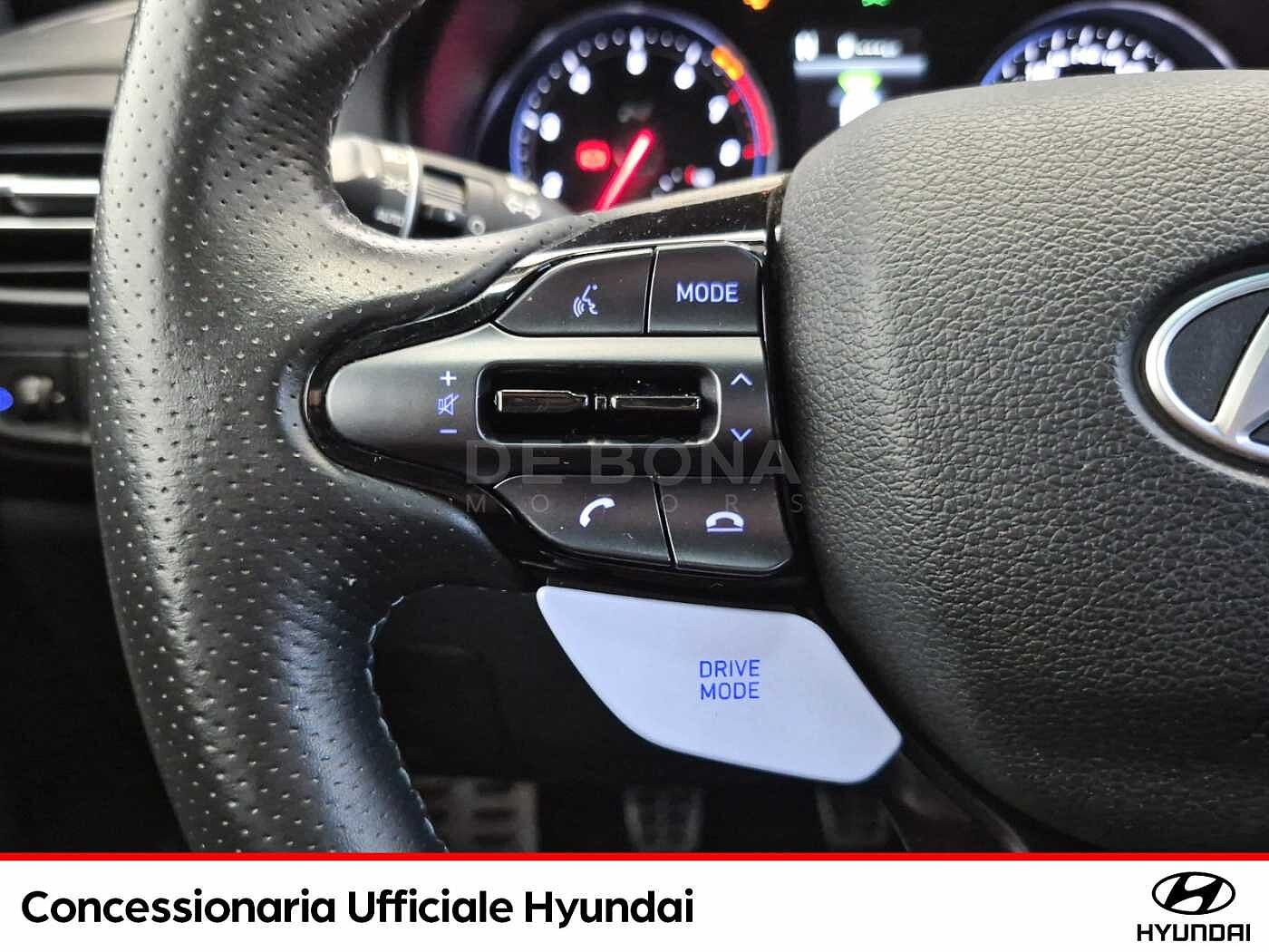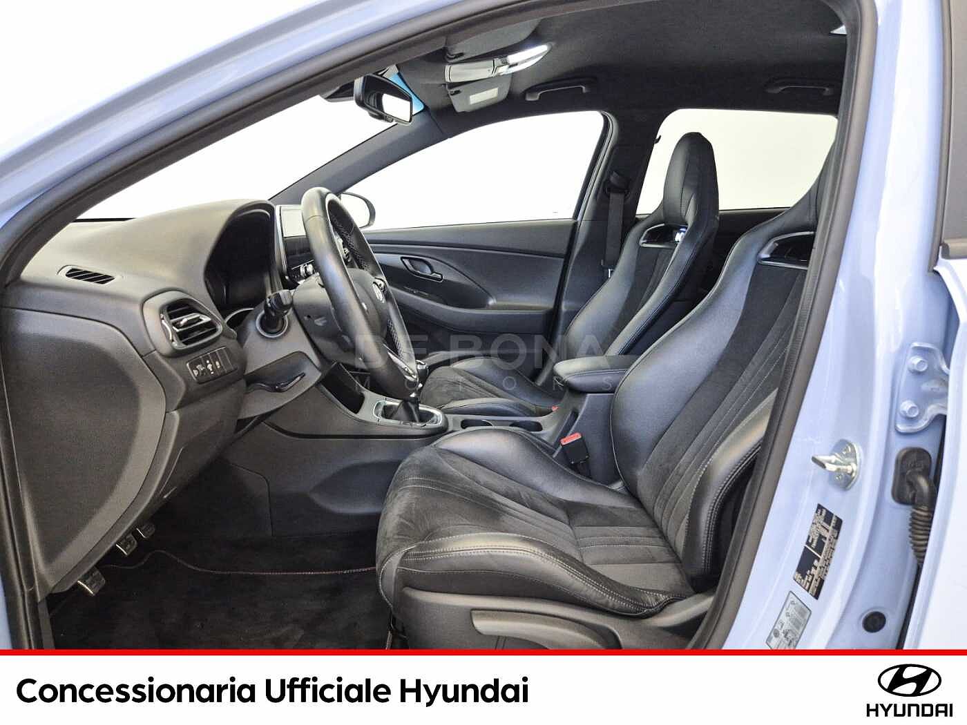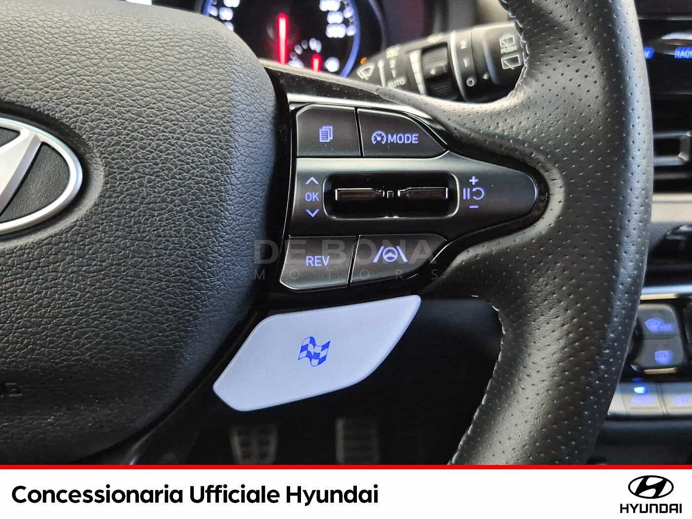 2 Airbag a tendina, 2 Airbag anteriori, 2 Airbag laterali, Airbag ginocchia guidatore, Alzacristalli elettrici anteriori e posteriori con funzione safety, Antifurto Con Radiocomando A Distanza E Immobilizer, Attacchi ISOFIX, Blind Spot Collision Warning (B.C.W.), Bluetooth con riconoscimento vocale, Bracciolo anteriore con vano portaoggetti, Caricatore wireless per smartphone, Cerchi in lega leggera forgiati da 19quot; con pneumatici 235/35 R19, Climatizzatore automatico bi-zona, Comandi audio al volante, Controllo elettronico delle sospensioni, Cruise Control, Differenziale elettronico a slittamento limitato, Doppio scarico con finiture cromate, Fari Full LED con illuminazione statica degli angoli, Indicatori Di Direzione Integrati Negli Specchietti, Interni Oceanids Black, Kit Gonfiaggio Pneumatici, Launch control, Luce di stop triangolare a LED, Luci diurne e di posizione a LED, Luci posteriori a LED, Manual Speed Limit Assist (M.S.L.A.), Parabrezza antiriflesso, Pedaliera rivestita in metallo, Pomello del cambio rivestito in pelle con finiture cromate, Prese ausiliarie 12V (tunnel centrale), Pulsante dapos;avviamento quot;Start Buttonquot; con Smart Key, Rev matching, Sedile Posteriore Abbattibile Con Modulo 60:40, Sedili anteriori regolabili in altezza, Sedili anteriori riscaldabili, Sedili sportivi N con poggiatesta integrato rivestito in misto pelle/tessuto scamosciato, Sensore crepuscolare, Sensore pioggia, Sensori Di Parcheggio Anteriori E Posteriori, Servizi telematici Bluelink, Sistema di assistenza alla partenza in salita (H.A.C.), Sistema di assistenza anti-collisione frontale con riconoscimento veicoli e pedoni (F.C.A.), Sistema di controllo della stabilità (E.S.P.), Sistema di disappannamento del parabrezza, Sistema di frenata anti bloccaggio (A.B.S.), Sistema di gestione automatica dei fari abbaglianti (H.B.A.), Sistema di mantenimento al centro della corsia (L.F.A.), Sistema di monitoraggio pressione gomme (T.P.M.S.), Sistema di navigazione con display TFT LCD da 10.25quot; con retrocamera e connettività Apple Carpl, Sistema di rilevamento della stanchezza del conducente (D.A.W.), Sistema ISG quot;idle Stopamp;Go Systemquot;, Specchietto retrovisore elettrocromico, Vano Portaocchiali Centrale, Vetri posteriori oscurati, Volante sportivo a tre razze rivestito in pelle traforata e riscaldabile
