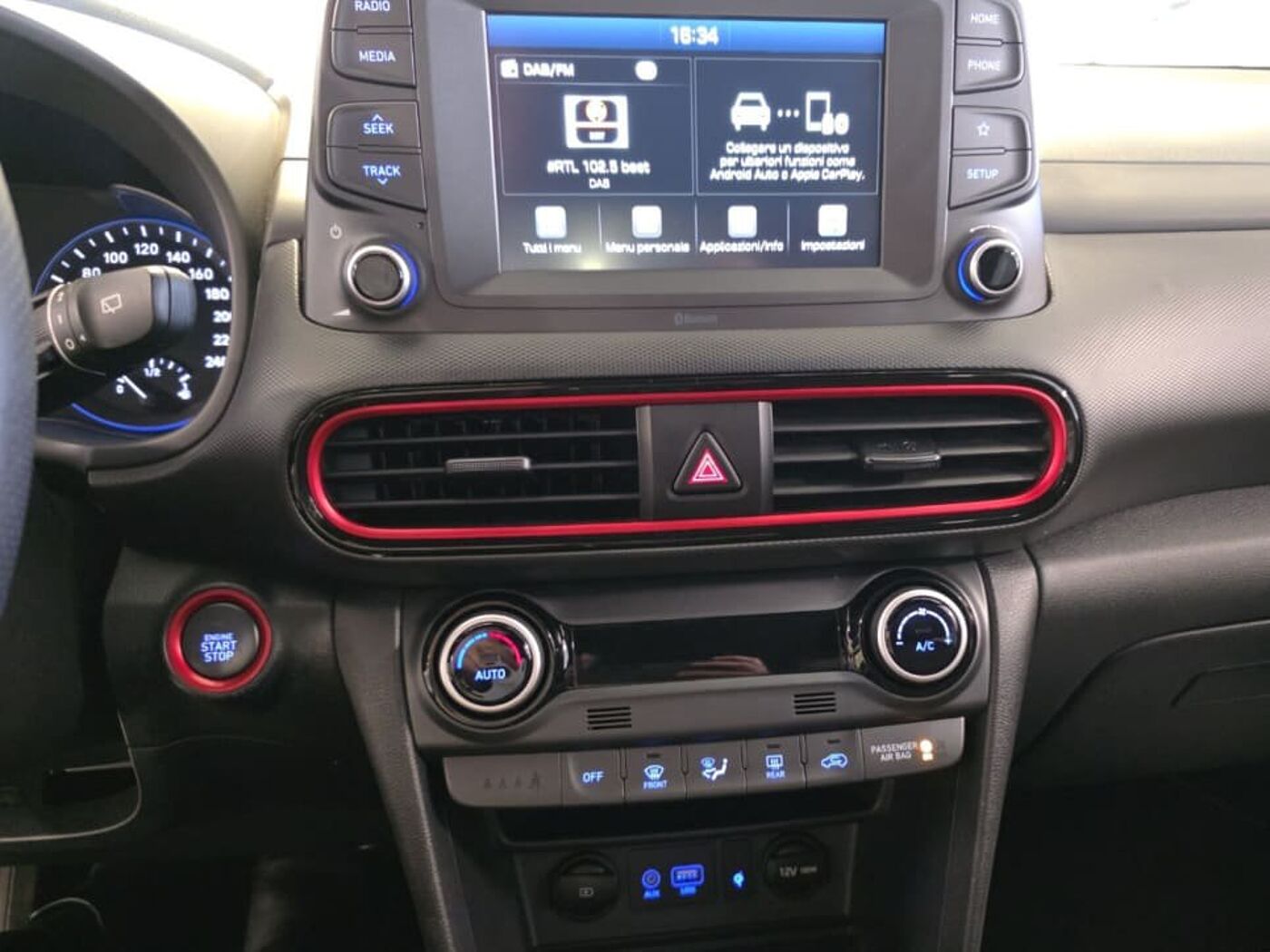 La vettura è completa nella dotazione optional di 2 Airbag a tendina, 2 Airbag anteriori, 2 Airbag laterali, Alzacristalli elettrici anteriori e posteriori con funzione safety, Antifurto Con Radiocomando A Distanza E Immobilizer, Attacchi ISOFIX, Barre portatutto longitudinali, Bluetooth, Bracciolo anteriore con vano portaoggetti, Caricatore wireless per smartphone, Cerchi in lega leggera da 18''con pneumatici 235/45 R18, Climatizzatore automatico, Cluster Supervision da 3,5''LCD monocromatico, Comandi audio al volante, Cruise Control, Fendinebbia anteriori, Griglia frontale con finitura cromata, Indicatori di direzione a LED integrati negli specchietti, Inserti colorati (inserti plancia,cuciture sedili e volante), Kit Gonfiaggio Pneumatici, Luci diurne e di posizione a LED, Maniglie e specchietti retrovisori in tinta con la carrozzeria, Maniglie interne cromate, Modanature laterali e finiture delle portiere in colore grigio, Multimedia System - Touchscreen da 7''con Connettività Apple CarPlay e Android Auto e retrocam, Passaruota e fascia paracolpi laterale di colore grigio scuro con inserti silver, Poggiatesta anteriori regolabili in altezza, Presa ausiliaria 12V (plancia), Pulsante d'avviamento''Start Button''con Smart Key, Radio con ricezione DAB, Radio con schermo monocromatico 5''TFT LCD,presa AUX e 2 prese USB con 6 speakers, Rete fermabagagli, Rivestimenti bracciolo portiere in pelle, Rivestimenti plancia in materiale soft-touch, Rivestimenti portiere in pelle, Sedile Posteriore Abbattibile Con Modulo 60:40, Sedile guidatore con supporto lombare elettrico, Sedile guidatore regolabile in altezza, Sedili rivestiti in misto tessuto/pelle, Sensore crepuscolare, Sensori Di Parcheggio Posteriori, Servosterzo Elettrico, Sistema ISG''Idle Stop&Go System'', Sistema di assistenza alla partenza in salita (H.A.C.), Sistema di controllo della stabilità (E.S.P.), Sistema di controllo della velocità in discesa (D.B.C.), Sistema di frenata anti bloccaggio (A.B.S.), Sistema di mantenimento della corsia (L.K.A.), Sistema di monitoraggio pressione gomme (T.P.M.S.), Sistema di rilevamento della stanchezza del conducente (D.A.W.), Specchietti retrovisori regolabili e riscaldabili elettricamente, Specchietto retrovisore elettrocromico, Spoiler posteriore, Vano Portaocchiali Centrale, Vetri posteriori oscurati, Volante e pomello del cambio rivestiti in pelle, Volante regolabile in altezza