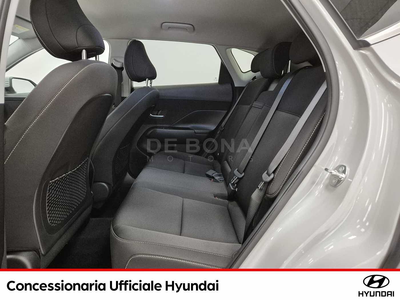 2 Airbag a tendina, 2 Airbag anteriori, 2 Airbag laterali, 4 Usb-C presa e Presa ausiliaria 12V (plancia), 5 Anni Di Garanzia / Km Illimitati, 6 Speakers, Airbag centrale, Alzacristalli elettrici anteriori e posteriori con funzione safety (anteriori), Antifurto con immobilizer, Attacchi ISOFIX, Barre portatutto longitudinali, Bluetooth con riconoscimento vocale, Bracciolo anteriore, Caricatore wireless per smartphone, Cerchi in lega leggera da 18quot; con pneumatici 215/55 R18, Climatizzatore automatico, Cluster Supervision da 12.3quot; TFT LCD, Comandi audio al volante, Drive Mode Select, Freno di stazionamento elettrico, Highway Driving Assist (H.D.A.), Hyundai Smart Sense, Indicatori di direzione a LED integrati negli specchietti, KIT GONFIAGGIO PNEUMATICI, Led orizzontale, Luci interne a led e luci ambiente, Maniglie e specchietti retrovisori in tinta con la carrozzeria, Modanature e passaruota neri, Paddle al volante, Poggiatesta anteriori regolabili in altezza, Radio RDS + DAB, Rear Occupant Alert (R.O.A.), Retrovisore interno elettrocromico, Sedile guidatore con supporto lombare elettrico, Sedile guidatore regolabile in altezza, Sedile posteriore abbattibile con modulo 40:20:40, Sedili rivestiti in tessuto, Sensore crepuscolare e sistema di gestione automatica dei fari abbaglianti (H.B.A.), Sensori di parcheggio anteriori e posteriori + retrocamera, SISTEMA DI ASSISTENZA ALLA PARTENZA IN SALITA (H.A.C.), Sistema di assistenza anti-collisione frontale con riconoscimento veicoli, pedoni, cicli e junction turning protection (F.C.A 1.5), Sistema di controllo della stabilita (E.S.P.), Sistema di frenata anti bloccaggio (A.B.S.), Sistema di mantenimento al centro della corsia (L.F.A.), Sistema di monitoraggio pressione gomme (T.P.M.S.), Sistema di navigazione con display touchscreen TFT LCD da 12.3quot; con Connettività Apple CarPlay , Sistema di riconoscimento attivo dei limiti di velocità (I.S.L.A.), Sistema di rilevamento della stanchezza del conducente (D.A.W.), Smart Cruise Control, Smart key amp; Start Button, Specchietti retrovisori regolabili e riscaldabili elettricamente, Vetri posteriori oscurati, Volante regolabile in altezza