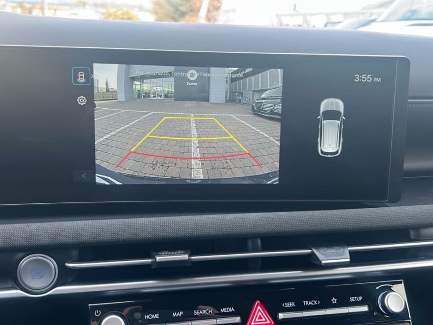 La vettura è completa nella dotazione optional di 2 Airbag a tendina, 2 Airbag anteriori, 2 Airbag laterali, Airbag centrale, Alzacristalli elettrici anteriori e posteriori con funzione up & down safety, Antifurto Con Radiocomando A Distanza E Immobilizer, Attacchi ISOFIX, Barre portatutto longitudinali, Blind Spot Collision avoidance Assist (B.C.A.), Bluetooth con riconoscimento vocale, Bracciolo anteriore con vano portaoggetti, Cambio Shift-by-wire, Caricatore wireless per smartphone, Cavo di ricarica di emergenza, Cerchi in lega leggera da 19'' con pneumatici 235/50 R19, Climatizzatore automatico a 3 zone, Cluster super vision - quadro strumenti TFT LCD ad alta definizione da 12.3'', Comandi audio al volante, Fari anteriori full led wide projection, Fari posteriori FULL LED, Frenata autonoma di emergenza con riconoscimento veicoli, pedoni e cicli e funzione junction (F, Freno di stazionamento elettrico, GARANZIA 5 ANNI / KM ILLIMITATI, Head-Up Display, Hyundai Smart Sense, Kit Gonfiaggio Pneumatici, Krell premium sound system - sistema audio a 8 canali con subwoofer e amplificatore, Luci interne a LED, Maniglie e specchietti retrovisori in tinta con la carrozzeria, Paddle al volante, Portellone posteriore elettrico, Presa ausiliaria 12V (plancia), Pulsante d'avviamento Start Button con Smart Key, Rear occupant alert logic (R.O.A.), Remote Seat Folding, Retrovisore interno elettrocromico, Sedile guidatore e passeggero regolabili in altezza e con supporto lombare elettrico, Sedile posteriore abbattibile con modulo 40:20:40, Sedili anteriori riscaldabili, Sedili misto pelle / tessuto, Sensore crepuscolare, Sensori di parcheggio anteriori, Sensori di parcheggio posteriori con retrocamera, Servizi telematici bluelink per 10 anni (lite), Sistema di assistenza alla partenza in salita (H.A.C.), Sistema di assistenza anti-collisione frontale con riconoscimento veicoli, pedoni e cicli (F.C., Sistema di controllo della stabilità (E.S.C.), Sistema di controllo della velocità in discesa (D.B.C.), Sistema di gestione automaticadei fari abbaglianti (H.B.A.), Sistema di mantenimento al centro della corsia (L.F.A.), Sistema di navigazione con display touchscreen da 12.3'' con connettività apple carplay e androi, Sistema di riconoscimento dei limiti (I.S.L.A.), Sistema di rilevamento della stanchezza del conducente (D.A.W.), Smart Cruise Control, Specchietti retrovisori regolabili e riscaldabili elettricamente, Specchietti retrovisori ripiegabili elettricamente, Tendine parasole posteriori manuali, Trailer stability assist (T.S.A.), USB anteriori e posteriori, Vetri posteriori oscurati, Volante regolabile in altezza e profondità, Volante riscaldabile, Volante rivestito in pelle
